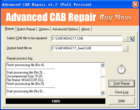Limitations: Demo version will report the recoverable items in the CAB file but will not output the fixed file.